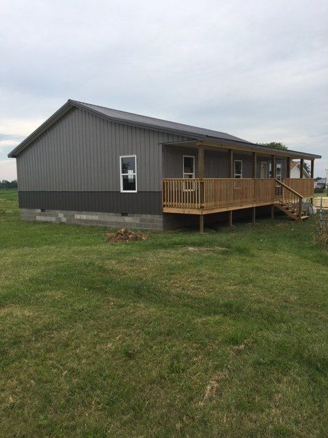 Home above is shown with Optional Wood Floor Foundation, 5-12 pitch trusses and 6'x40' front porch.